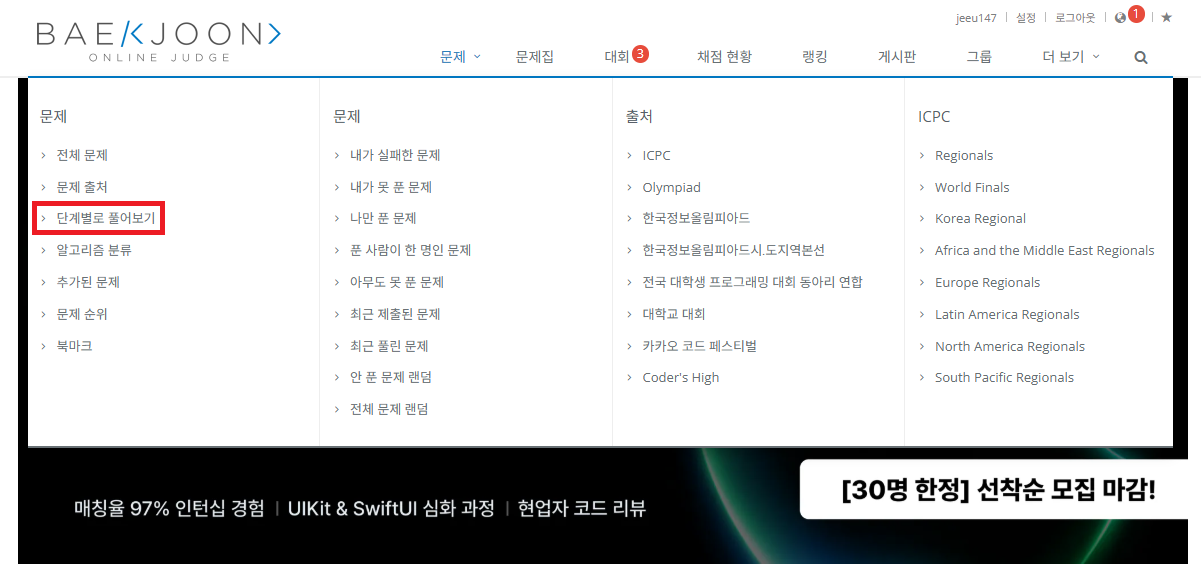 문제 > 단계별 풀어보기에서 부터 시작하려고 합니다 !