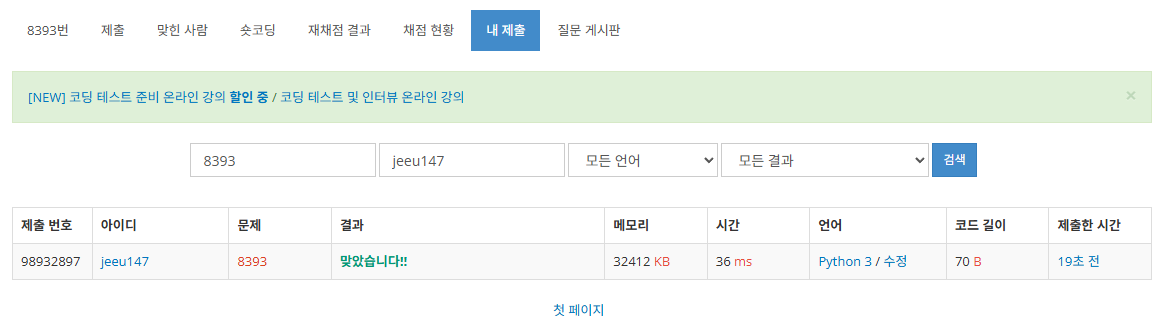 안녕하세요. 백준 알고리즘을 처음부터 꾸준하게 작성하여 문제 풀이 진행해보려고 합니다 !